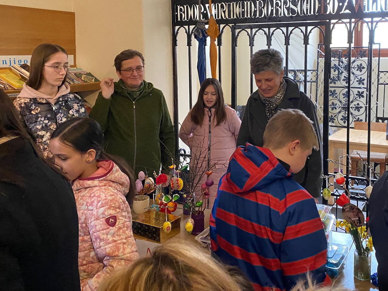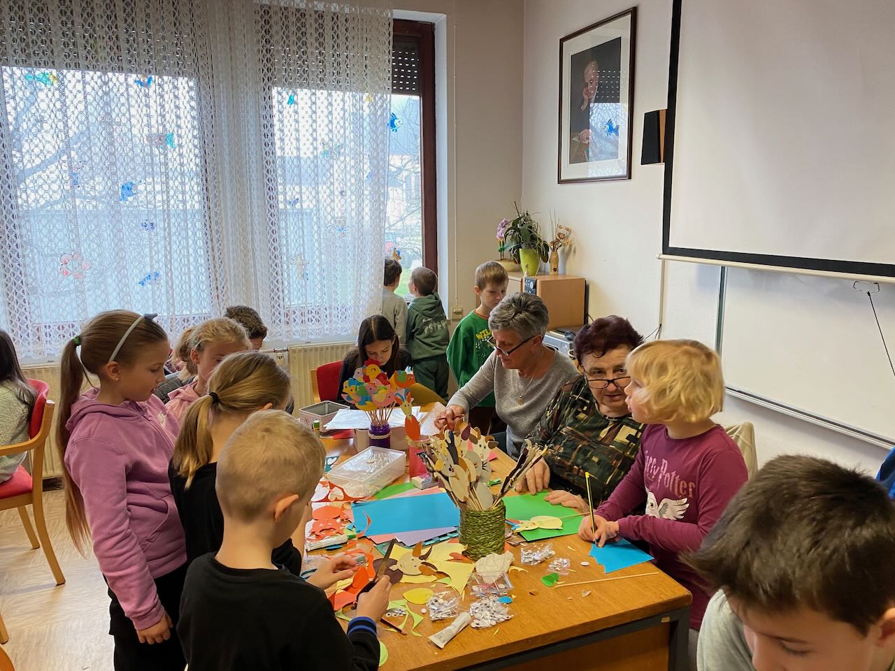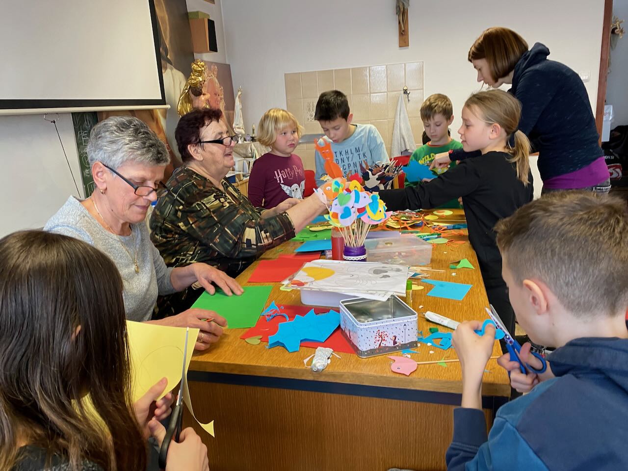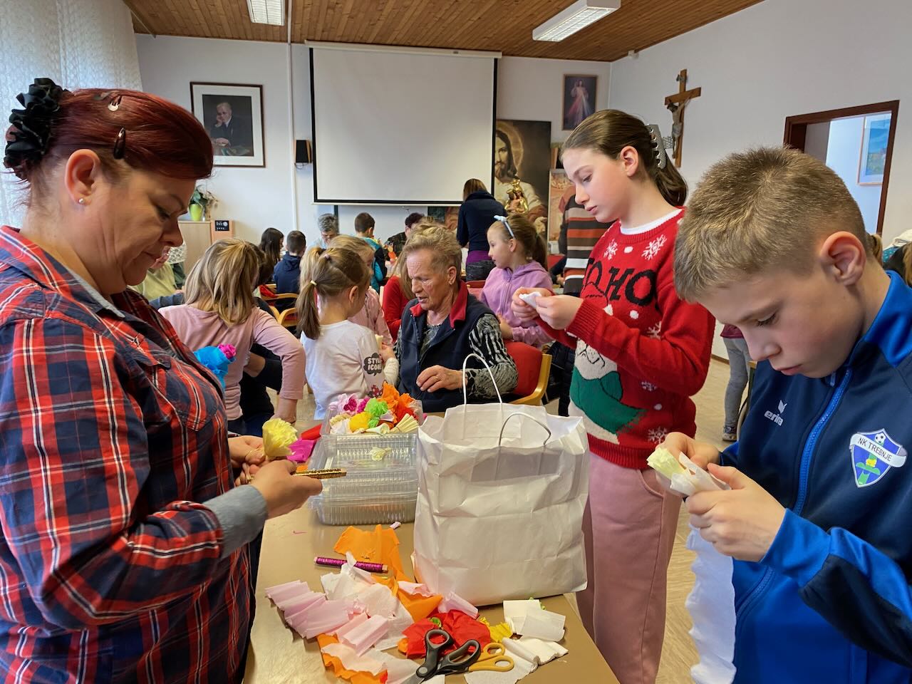 V soboto, 9.3.2024, se je na ustvarjalnih delavnicah, v župnišču, zbralo okoli 50 veroučencev. Skupaj s prostovoljci Karitas so izdelovali rože iz krep papirja za okrasitev butaric, zapestnice - desetke rožnega venca, kozice in ptičke iz kartona, dekoracije s pirhi in plakat.
